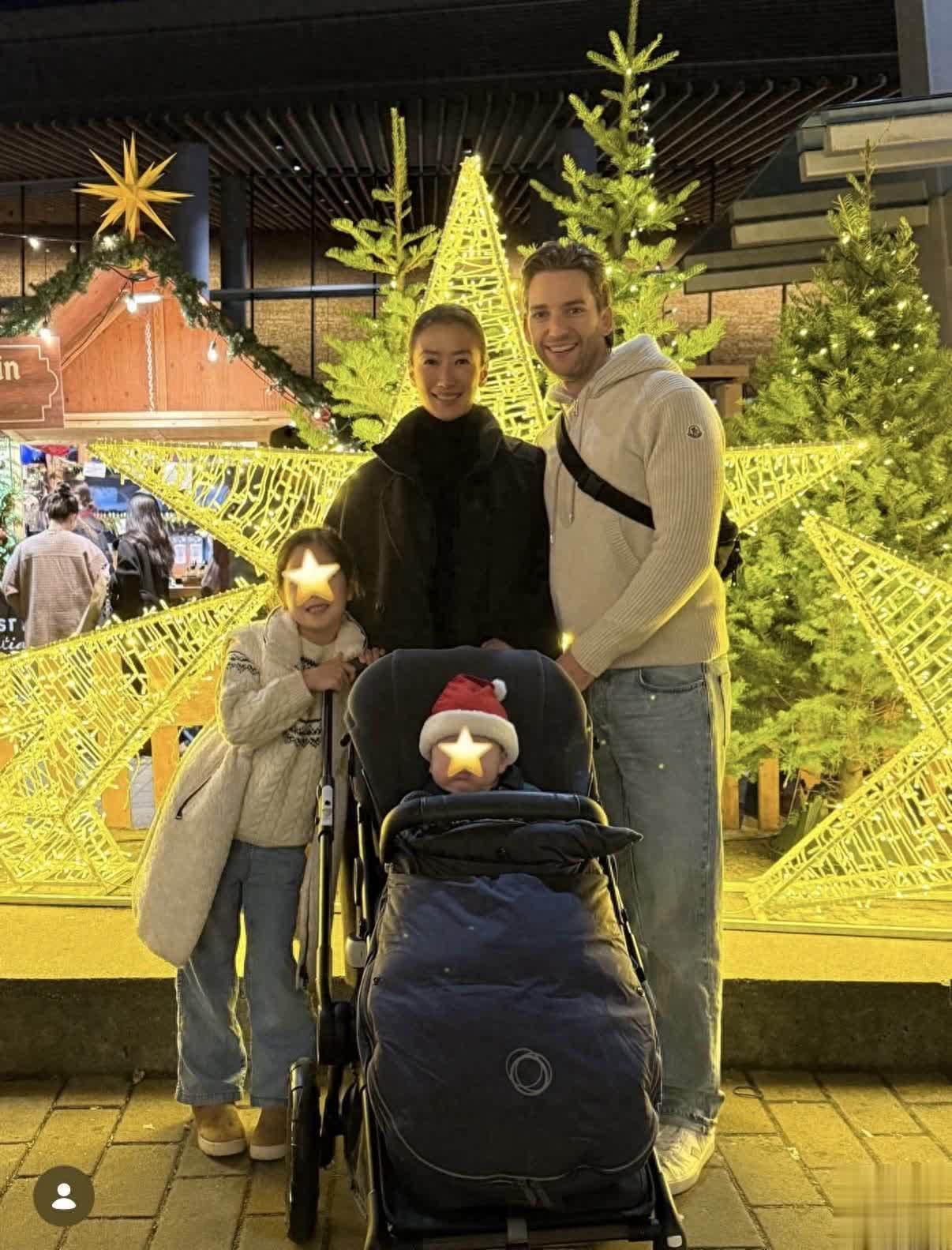 谢婷婷上一次晒出一家四口的合照,还是在儿子出生后不久,时隔半年她再度晒出一家四口的温馨合照,而且还是在户外的合照。一家人外出感受圣诞的喜庆,她与男友Mathew推了一个婴儿车,半岁的儿子坐在婴儿车里,被遮盖得严严实实,还很应景地戴上了一顶圣诞帽。小宝宝坐在车里,虽然脸被遮住了,但是看得出他被谢婷婷养得白白胖胖的,脸蛋肉肉的甚是可爱,样子很像其父亲Mathew。