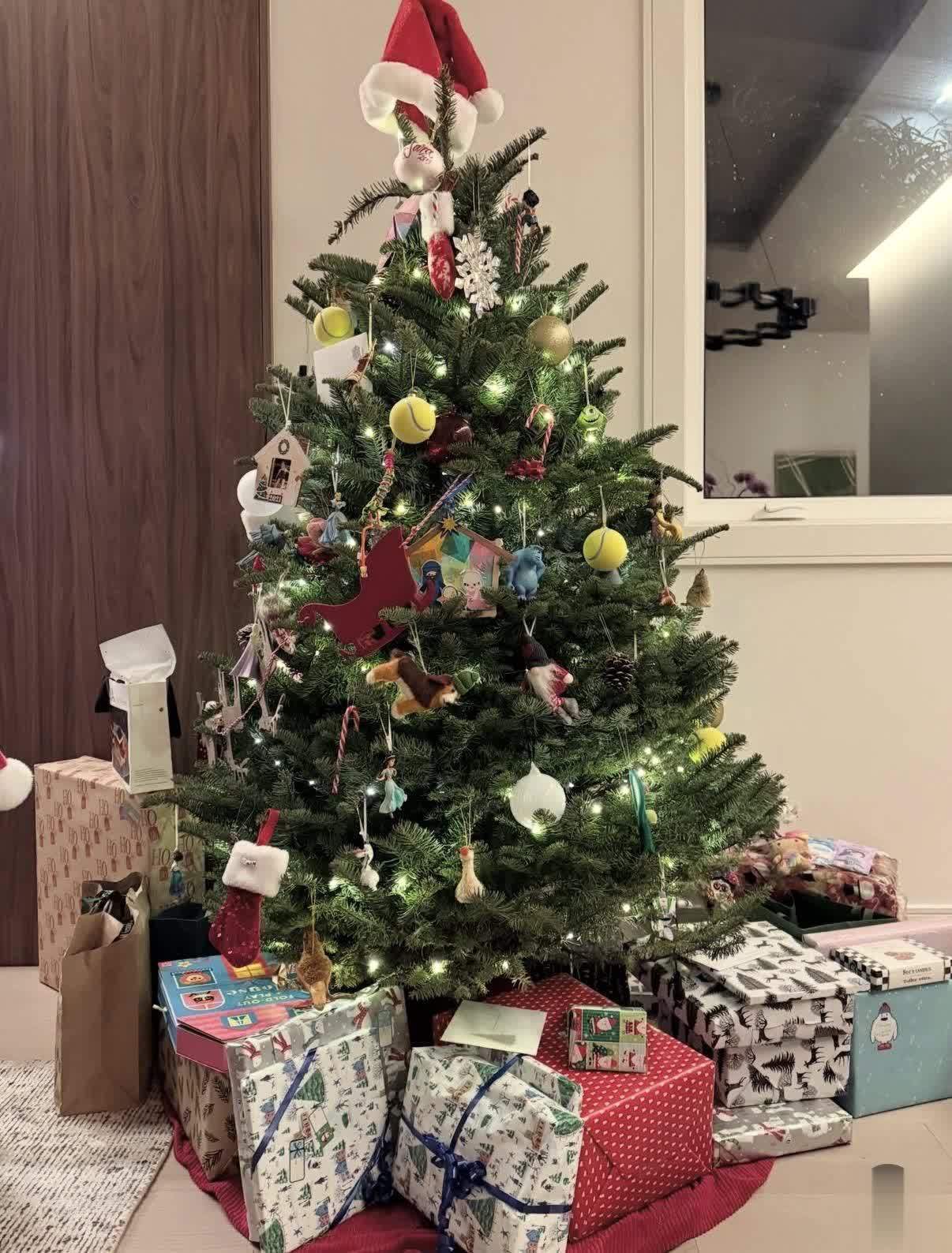 谢婷婷在圣诞节期间,不只是与家人外出逛街,实际上她在家中也一早就把豪宅精心装点了一番。为了让一家人住得更舒适,她在儿子出生前就已经找到了一个新的别墅,并且在儿子出生后举家搬到了新房子,自此之后展开了新生活。2025年圣诞节是谢婷婷第一次一家四口庆祝,也是首度在新房子庆祝,所以装饰是必须的,她买了一棵不算太大的圣诞树,上面装点了铃铛、圣诞帽,手套等,少不了的还有网球,圣诞树下堆满了礼物盒,仪式感十足。