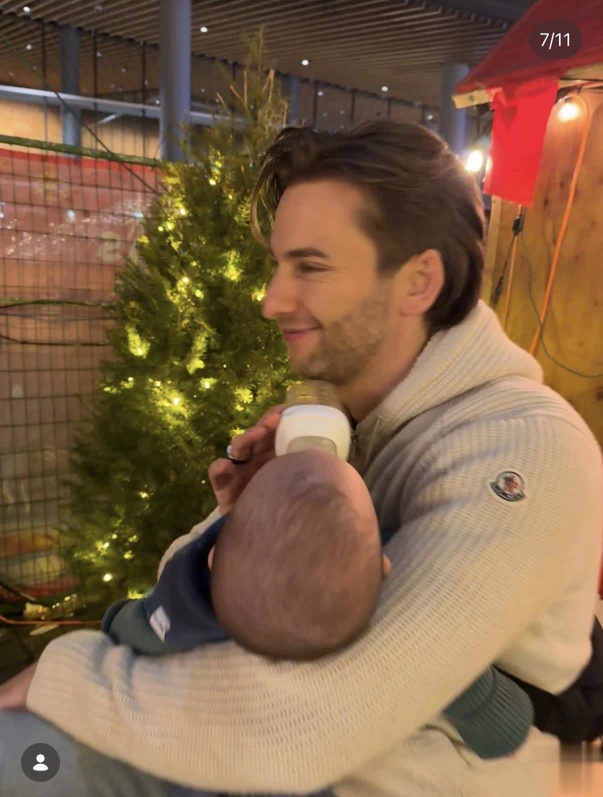 别看Mathew比谢婷婷小7岁,感觉还是个男孩,但是他很体贴,很会照顾人。一家四口外出看圣诞装饰物,他负责推婴儿车,同时还要照顾Sara,而在游玩期间,他还要给儿子喂奶。对于这些琐碎的工作,他可是任劳任怨,尤其在给孩子喂奶的时候,动作娴熟,而且一脸幸福感,由此可见,在家的时候他经常给孩子喂奶,换尿片,绝对是个顾家,爱孩子的好男人。